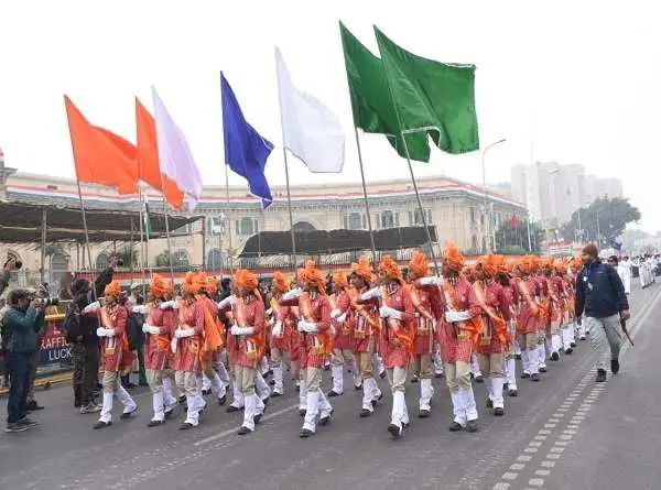 लखनऊ, 24 जनवरी दिन राजधानी लखनऊ में गणतंत्र दिवस (26 जनवरी) पर होने वाले परेड की तैयारियों को अंतिम रूप दिया जा रहा है। गणतंत्र दिवस के मदृेनजर बुधवार को विधान भवन के सामने फुल ड्रेस परेड रिहर्सल किया गया है।इसमें यूपी पुलिस, सैनिक और अर्धसैनिक बल, होमगार्ड और स्कूली बच्चे शामिल रहें।