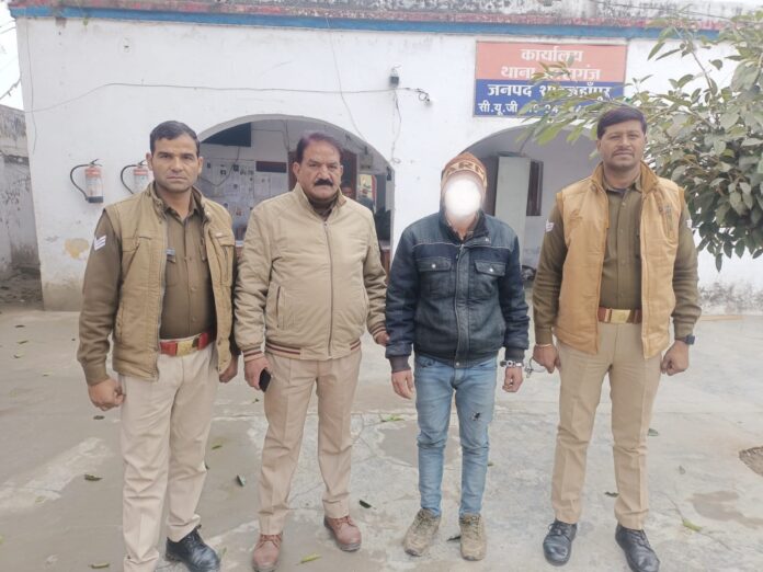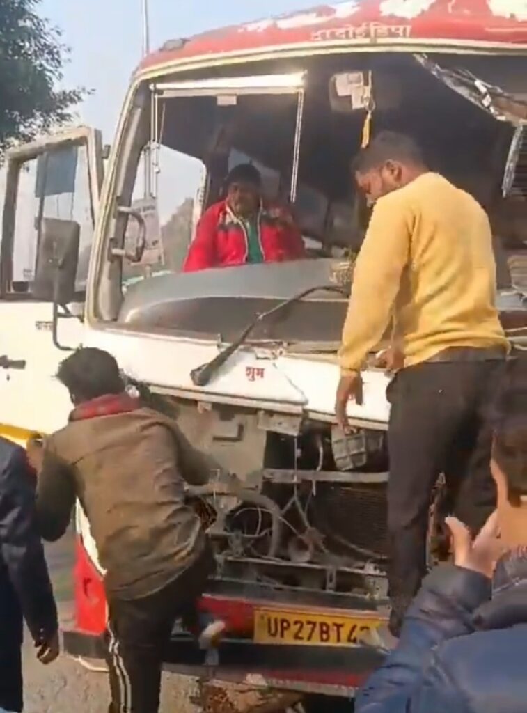 उसके संबन्ध में संलिप्त ड्राईवर बरामद व उससे पूछताछ मुकदमा अपराध संख्या 024/2024 धारा 279/304ए/304 आईपीसी चालक नाम पता अज्ञात एक्सीडेंट की घटना के संबंध में दिनांक घटना 25/1/2024 एक्सीडेंट की घटना के बाद से ही चालक फरार था, जिसको आज दिनांक 28.01.2024 को समय करीब 10.00 बजे मऊ शाहजहाँपुर जाने वाली सड़क स्टेट हाईवे रोड से करीब 100 मीटर की दूरी से गिरफ्तार कर लिया गया है।