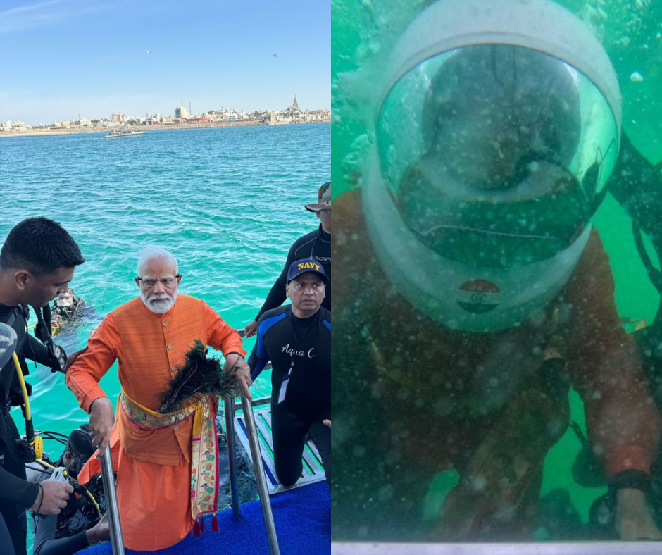 नरेंद्र मोदी ने रविवार को एक अनोखी पहल करते हुए समुद्र की गहराई में डुबकी लगाई और पौराणिक शहर द्वारका के अवशेषों के पास प्रार्थना की. माना जाता है कि द्वारका शहर भगवान कृष्ण की राजधानी थी, और अब यह गुजरात के तट पर समुद्र के नीचे डूबा हुआ है.