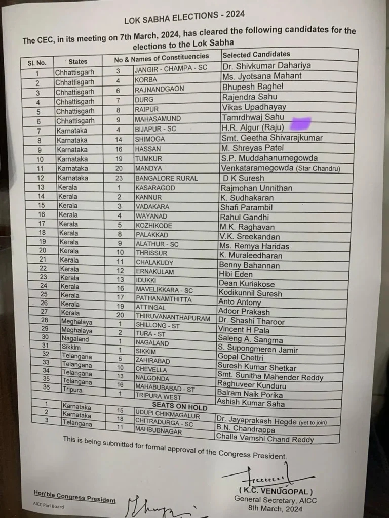 LOKSABHA ELECTION: कांग्रेस ने लोकसभा की पहली लिस्ट जारी कर दी हैं, यह लिस्ट 39 कैंडिडेट की जारी की गयी हैं, इस लिस्ट मे कांग्रेस के पूर्व अध्यक्ष राहुल गाँधी व पूर्व मुख्यमंत्री भूपेश बघेल का नाम शामिल हैं. इस लिस्ट मे केरल के वायनाड से राहुल गाँधी को उम्मीदवार बनाया गया हैं.