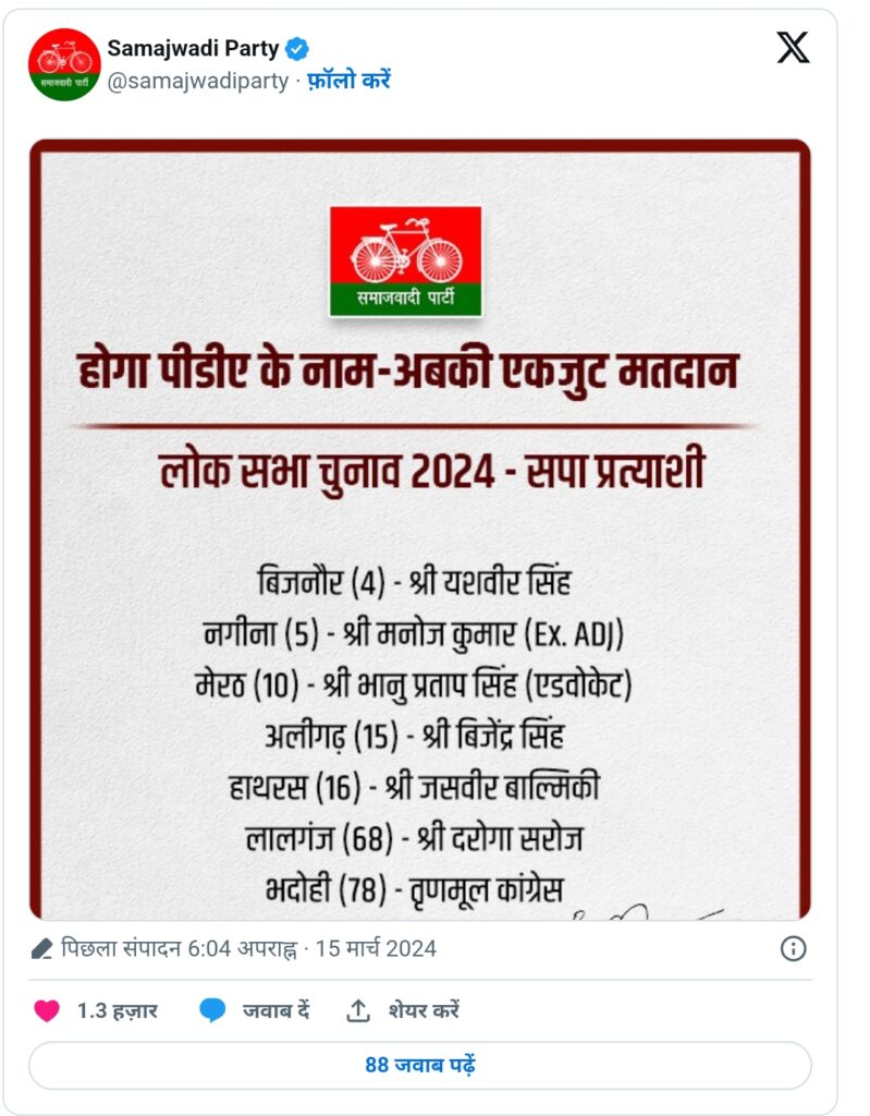HomeराजनीतिSP CANDIDATE LIST 4th: समाजवादी पार्टी ने जारी की प्रत्याशियों की तीसरी... राजनीति SP CANDIDATE LIST 4th: समाजवादी पार्टी ने जारी की प्रत्याशियों की तीसरी लिस्ट By crimemanchmonthly March 15, 2024 0 49 Share FacebookTwitterPinterestWhatsApp SP CANDIDATE LIST 3RD: समाजवादी पार्टी ने लोकसभा प्रत्याशियों की जारी की चौथी लिस्ट, कुल 7 प्रत्याशियों के लिए जारी की गयी लिस्ट 6 समाजवादी पार्टी के प्रत्याशी व एक TMC के लिए छोड़ दिया हैं. Share FacebookTwitterPinterestWhatsApp Previous articleजुमे की नमाज पर प्रदेश भर में सतर्कता, CAA लागू होने के बाद जुमे की पहली नमाजNext articleरेलवे के राजस्व में एक साल में 17 हजार करोड़ की उछाल crimemanchmonthlyhttps://crimemanch.in RELATED ARTICLES राजनीति संदीप दीक्षित क्यों करेंगे केजरीवाल पर क्रिमिनल और सिविल डिफेमेशन का केस December 31, 2024 राजनीति कौन हैं अभिषेक मनु सिंघवी, जिसकी संसदीय सीट के नीचे से मिली नोट की गड्डी December 6, 2024 राजनीति बीजेपी ने झारखण्ड में उतारे उम्मीदवार, देखे लिस्ट October 19, 2024 LEAVE A REPLY Cancel reply Comment: Please enter your comment! Name:* Please enter your name here Email:* You have entered an incorrect email address! Please enter your email address here Website: Save my name, email, and website in this browser for the next time I comment. - Advertisment - Most Popular ब्राइडल लुक में छाईं जाह्नवी कपूर, August 7, 2025 बागेश्वर बाबा पर भड़कीं ममता कुलकर्णी;कहा -धीरेंद्र शास्त्री चुपचाप बैठ जाए February 3, 2025 Deva Box Office Day 1 Collection: पहले दिन शाहिद कपूर की फिल्म ने की इतनी कमाई 1.67 करोड़ January 31, 2025 मात्र 24 घंटे के टीज़र पर इतने मिलियन व्यूज, सिकंदर फ़िल्म पर एक बार फिर मिला प्यार December 30, 2024 Load more