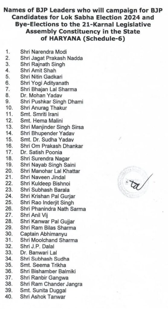 Homeराजनीतिजारी हुई हरियाणा के लिये स्टार प्रचारकों की लिस्ट, देखे BJP के... राजनीति जारी हुई हरियाणा के लिये स्टार प्रचारकों की लिस्ट, देखे BJP के किन नेताओं के नाम हैं शामिल By crimemanchmonthly May 1, 2024 0 89 Share FacebookTwitterPinterestWhatsApp हरियाणा के लिये भाजपा ने स्टार प्रचारकों की लिस्ट जारी कर दी हैं. बताते चले लिस्ट में 40 नेताओं के नाम शामिल है, इस लिस्ट में सबसे पहले प्रधानमंत्री नरेंद्र मोदी का नाम है, देखे किन नेताओं को किया गया हैं शामिल. Share FacebookTwitterPinterestWhatsApp Previous articleकोविशील्ड टीके को लेकर दाखिल की गयी याचिका, जोखिम के कारणों की जांच के लिए विशेषज्ञ समिति गठित करने की मांगNext articleकांग्रेस केंद्रीय चुनाव समिति ने पार्टी अध्यक्ष को अमेठी और रायबरेली सीटों पर उम्मीदवार घोषित करने का अधिकार दे दिया है-जयराम रमेश crimemanchmonthlyhttps://crimemanch.in RELATED ARTICLES राजनीति संदीप दीक्षित क्यों करेंगे केजरीवाल पर क्रिमिनल और सिविल डिफेमेशन का केस December 31, 2024 राजनीति कौन हैं अभिषेक मनु सिंघवी, जिसकी संसदीय सीट के नीचे से मिली नोट की गड्डी December 6, 2024 राजनीति बीजेपी ने झारखण्ड में उतारे उम्मीदवार, देखे लिस्ट October 19, 2024 LEAVE A REPLY Cancel reply Comment: Please enter your comment! Name:* Please enter your name here Email:* You have entered an incorrect email address! Please enter your email address here Website: Save my name, email, and website in this browser for the next time I comment. - Advertisment - Most Popular ब्राइडल लुक में छाईं जाह्नवी कपूर, August 7, 2025 बागेश्वर बाबा पर भड़कीं ममता कुलकर्णी;कहा -धीरेंद्र शास्त्री चुपचाप बैठ जाए February 3, 2025 Deva Box Office Day 1 Collection: पहले दिन शाहिद कपूर की फिल्म ने की इतनी कमाई 1.67 करोड़ January 31, 2025 मात्र 24 घंटे के टीज़र पर इतने मिलियन व्यूज, सिकंदर फ़िल्म पर एक बार फिर मिला प्यार December 30, 2024 Load more