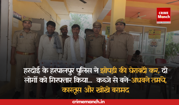 उत्तर प्रदेश: हरदोई की हरपालपुर पुलिस ने एक झोपड़ी में अवैध असलहों का निर्माण कर रहे दो लोगों को गिरफ्तार किया है. जिनके पास से पुलिस ने उनके कब्ज़े से बने-अधबने तमंचे, कारतूस और खोखे के अलावा उन्हे बनाने के उपकरण बरामद किए है। बताया गया है कि एसएचओ हरपालपुर आनंद नारायण त्रिपाठी, एसआई महावीर सिंह और पुष्कर वर्मा के अलावा अपनी टीम के साथ चेकिंग कर रहे थे,उसी बीच पता चला कि कुछ लोग नुर्रापुरवा के खेत में झोपड़ी डाल कर उसमें असलहे बना कर उन्हे बेचते है। असलहे किन को बेच रहे थे. पुलिस इसकी जानकारी कर रही है.