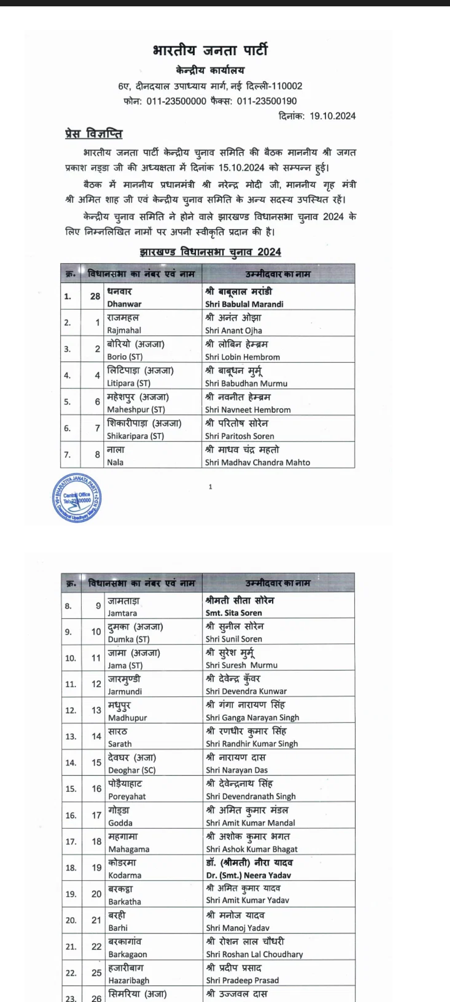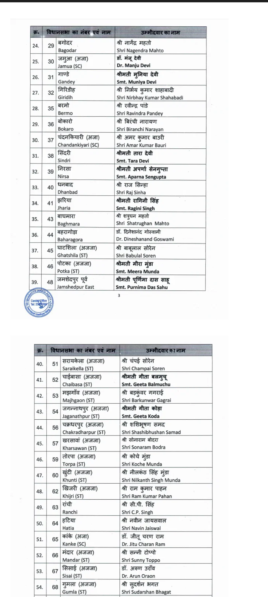 Homeराजनीतिबीजेपी ने झारखण्ड में उतारे उम्मीदवार, देखे लिस्ट राजनीति बीजेपी ने झारखण्ड में उतारे उम्मीदवार, देखे लिस्ट By crimemanchmonthly October 19, 2024 0 47 Share FacebookTwitterPinterestWhatsApp झारखंड में भाजपा ने विधानसभा चुनाव को लेकर अपने 66 प्रत्याशियों के नाम जारी कर दिए हैं. Share FacebookTwitterPinterestWhatsApp Previous articleहम जानते हैं कि केंद्र सरकार से अनुच्छेद 370 वापस नहीं मिलने वाला हैNext articleप्राथमिक विद्यालयों के जूनियर शिक्षकों को राहत, इलाहाबाद हाई कोर्ट ने ट्रांसफर पॉलिसी कैंसिल की crimemanchmonthlyhttps://crimemanch.in RELATED ARTICLES राजनीति संदीप दीक्षित क्यों करेंगे केजरीवाल पर क्रिमिनल और सिविल डिफेमेशन का केस December 31, 2024 राजनीति कौन हैं अभिषेक मनु सिंघवी, जिसकी संसदीय सीट के नीचे से मिली नोट की गड्डी December 6, 2024 राजनीति हम जानते हैं कि केंद्र सरकार से अनुच्छेद 370 वापस नहीं मिलने वाला है October 10, 2024 LEAVE A REPLY Cancel reply Comment: Please enter your comment! Name:* Please enter your name here Email:* You have entered an incorrect email address! Please enter your email address here Website: Save my name, email, and website in this browser for the next time I comment. - Advertisment - Most Popular ब्राइडल लुक में छाईं जाह्नवी कपूर, August 7, 2025 बागेश्वर बाबा पर भड़कीं ममता कुलकर्णी;कहा -धीरेंद्र शास्त्री चुपचाप बैठ जाए February 3, 2025 Deva Box Office Day 1 Collection: पहले दिन शाहिद कपूर की फिल्म ने की इतनी कमाई 1.67 करोड़ January 31, 2025 मात्र 24 घंटे के टीज़र पर इतने मिलियन व्यूज, सिकंदर फ़िल्म पर एक बार फिर मिला प्यार December 30, 2024 Load more