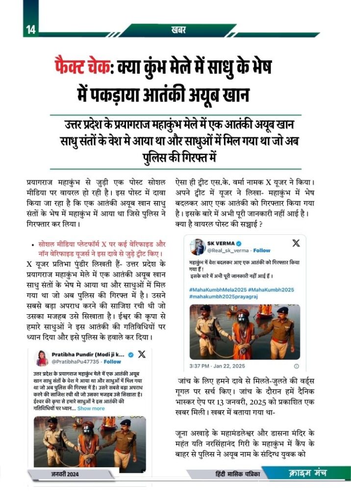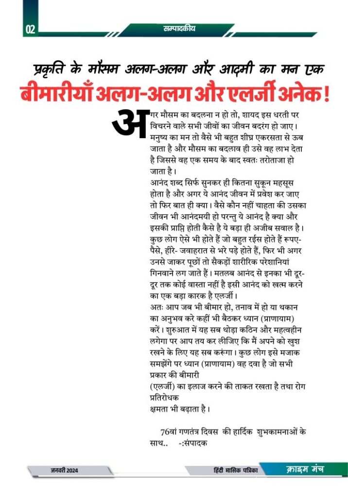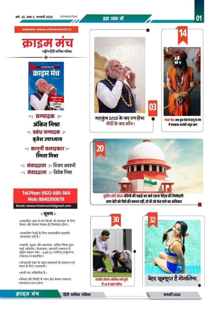 Homeई-मैगजीनजनवरी-2025 ई-मैगजीन जनवरी-2025 By crimemanchmonthly January 30, 2025 0 32 Share FacebookTwitterPinterestWhatsApp Share FacebookTwitterPinterestWhatsApp Previous articleVIDEO: अयोध्या में भगवान राम के रूप में सजी बच्ची का वीडियो वायरल, Next articleलखनऊ में ट्रेन की चपेट में आने से युवक घायल crimemanchmonthlyhttps://crimemanch.in RELATED ARTICLES - Advertisment - Most Popular ब्राइडल लुक में छाईं जाह्नवी कपूर, August 7, 2025 बागेश्वर बाबा पर भड़कीं ममता कुलकर्णी;कहा -धीरेंद्र शास्त्री चुपचाप बैठ जाए February 3, 2025 Deva Box Office Day 1 Collection: पहले दिन शाहिद कपूर की फिल्म ने की इतनी कमाई 1.67 करोड़ January 31, 2025 मात्र 24 घंटे के टीज़र पर इतने मिलियन व्यूज, सिकंदर फ़िल्म पर एक बार फिर मिला प्यार December 30, 2024 Load more
